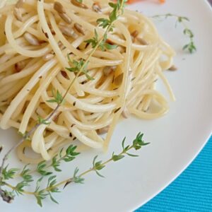 Champignons Grillés sur Lit de Polenta à la Coriandre, Salade de Chou Blanc avec Vinaigrette au Yaourt Vegan, Pickles maison