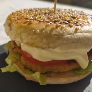 Hamburguesa de seitanas en bolo de caco