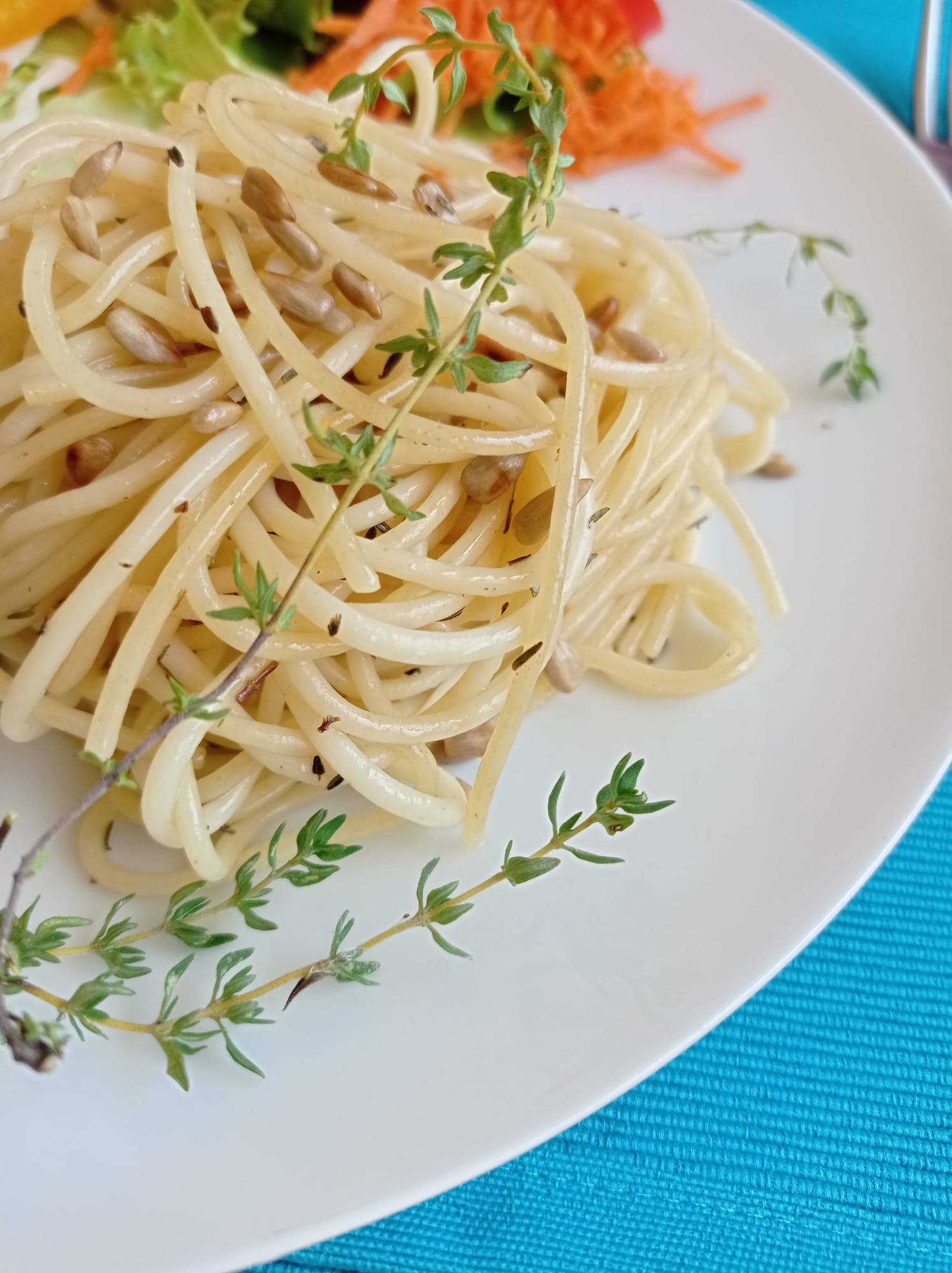 Champiñones a la plancha sobre cama de polenta con cilantro, ensalada de col blanca con aderezo de yogur vegano, encurtidos de la casa